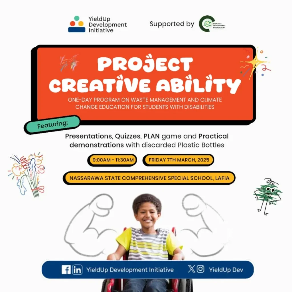 We champion eco-inclusion through the Community Environmental Club for Youths with Disabilities, where Environment Champions raise awareness about climate change and environmental issues, especially during key international observances like World Environment Day. Using the P.L.A.N. (Plan, Learn, Act Now) game card, participants engage in fun, educational activities that simplify climate issues and inspire real-world action